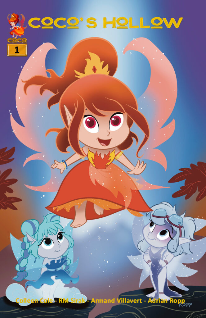 A collaboration with the lovely Colleen Cole. The first of many, we hope. The adventure of four fairy friends in a fantastical world. (ps – this was the first comic either of us had done. We learned some important lessons about pacing that we put into practice in e2)